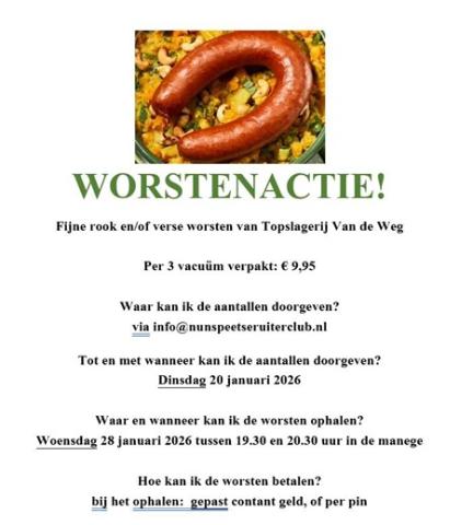 De januari worstenactie gaat weer van start. Dus verkoop en bestel je rook- en verse worsten: